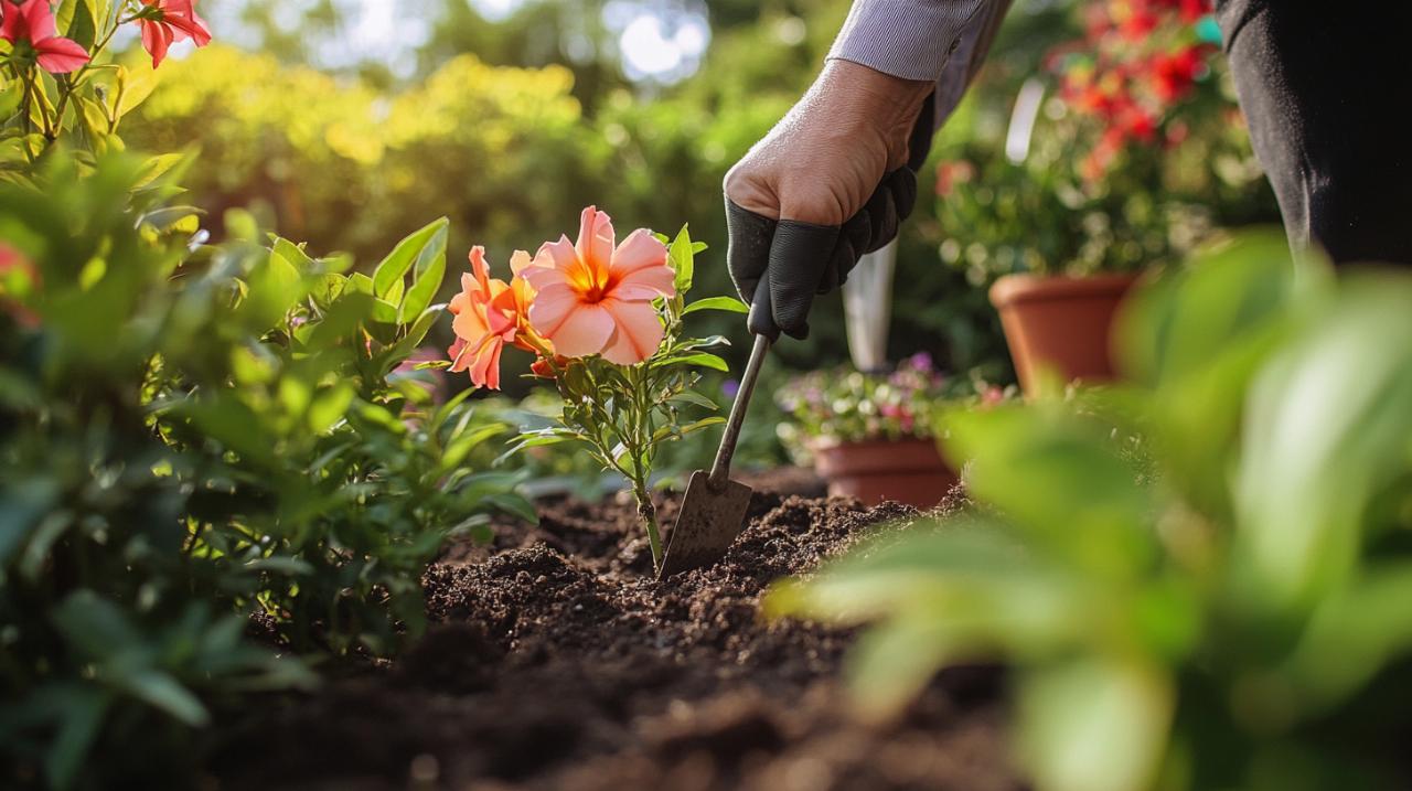 La technique de plantation proprement dite et les soins apportés durant les premières semaines déterminent le succès de l'installation du laurier rose en pleine terre. Des gestes précis et méthodiques facilitent l'adaptation de l'arbuste à son nouvel environnement et préviennent les complications comme le jaunissement du feuillage ou un développement insuffisant. La vigilance durant cette période critique permet d'accompagner la plante dans sa phase d'établissement et de détecter rapidement tout signe de stress végétal nécessitant une intervention corrective. Ces attentions initiales constituent un investissement qui se traduit par une croissance vigoureuse et une floraison généreuse dans les années suivantes.